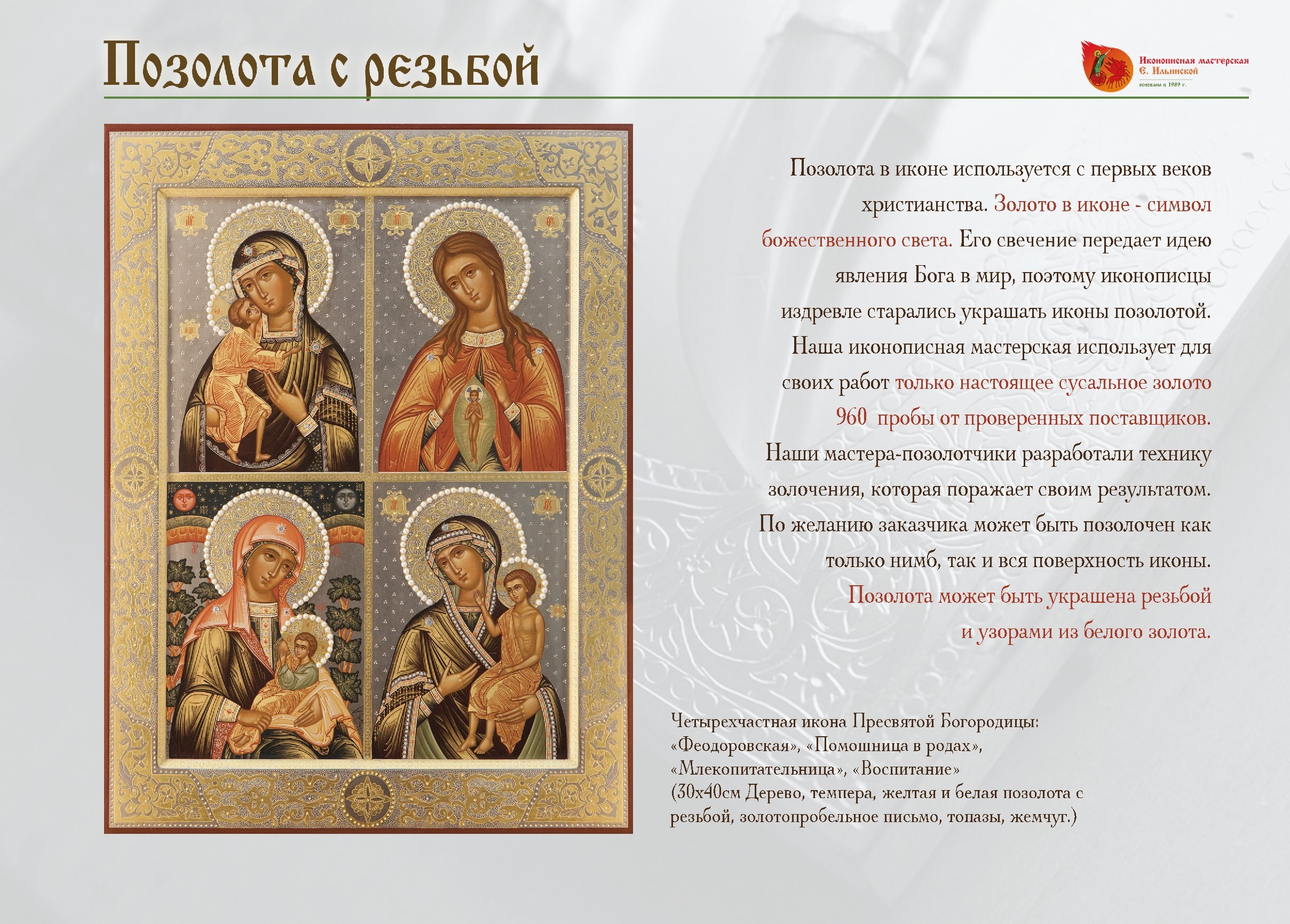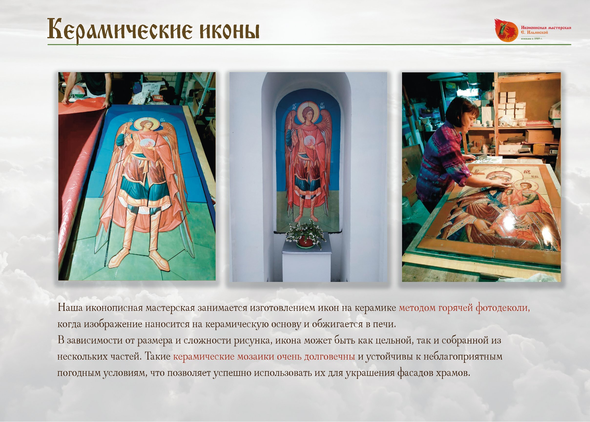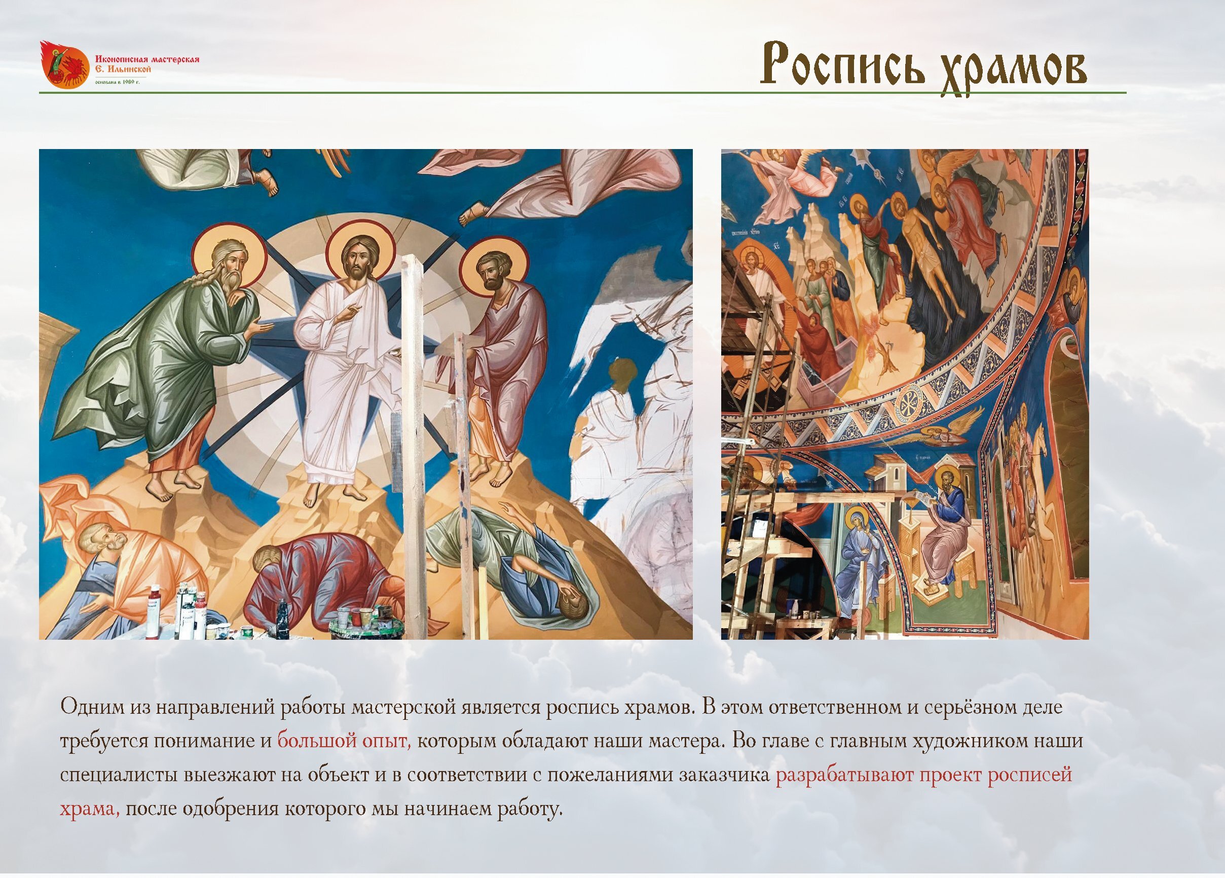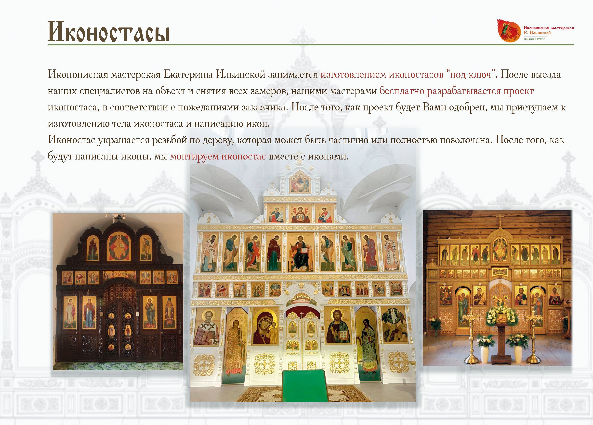 - Выполнение как икон в миниатюре, так и монументальные работы