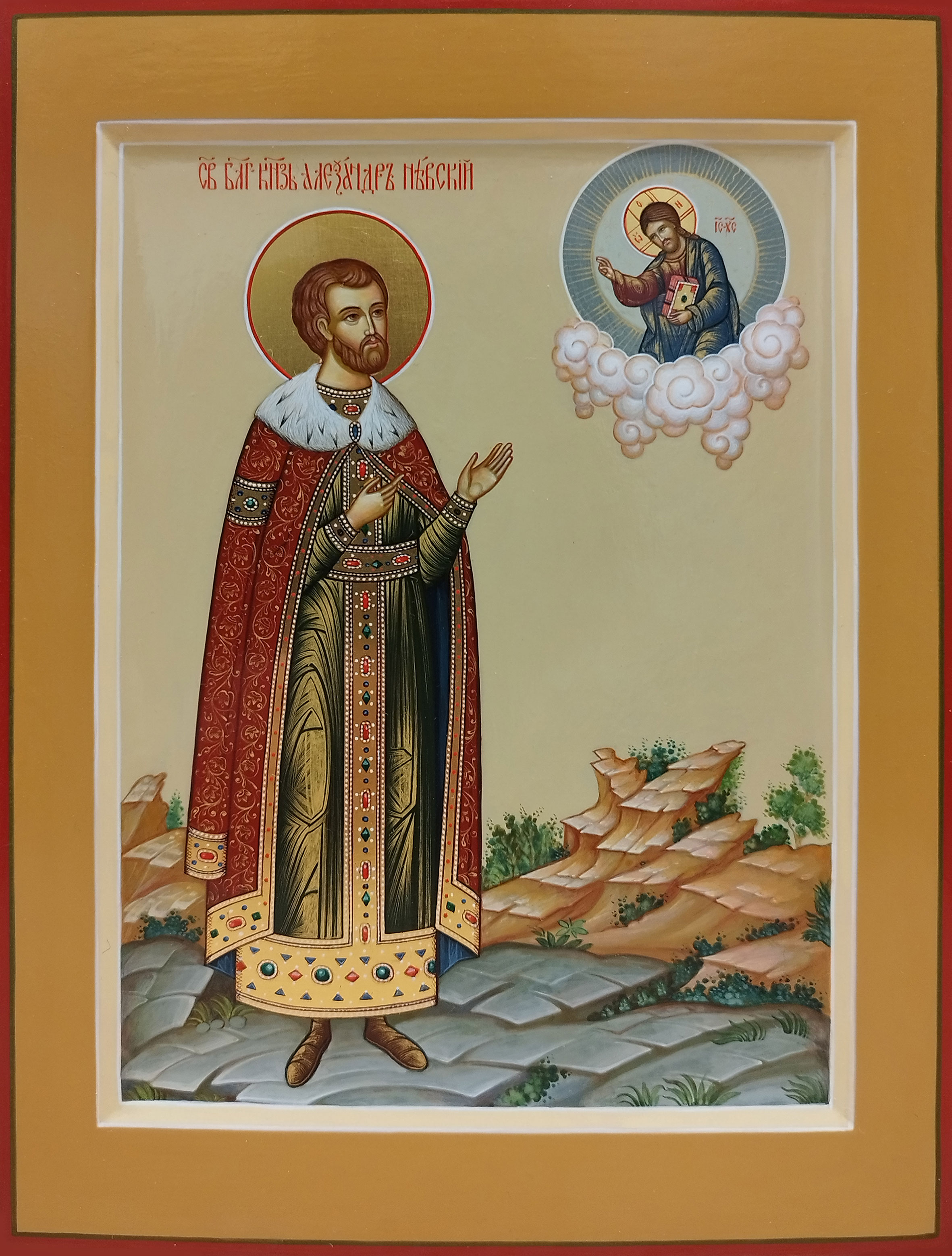 На ней изображены: святой Ангел Хранитель, святой мученик Михаил Черноризец, святой Александр Невски
