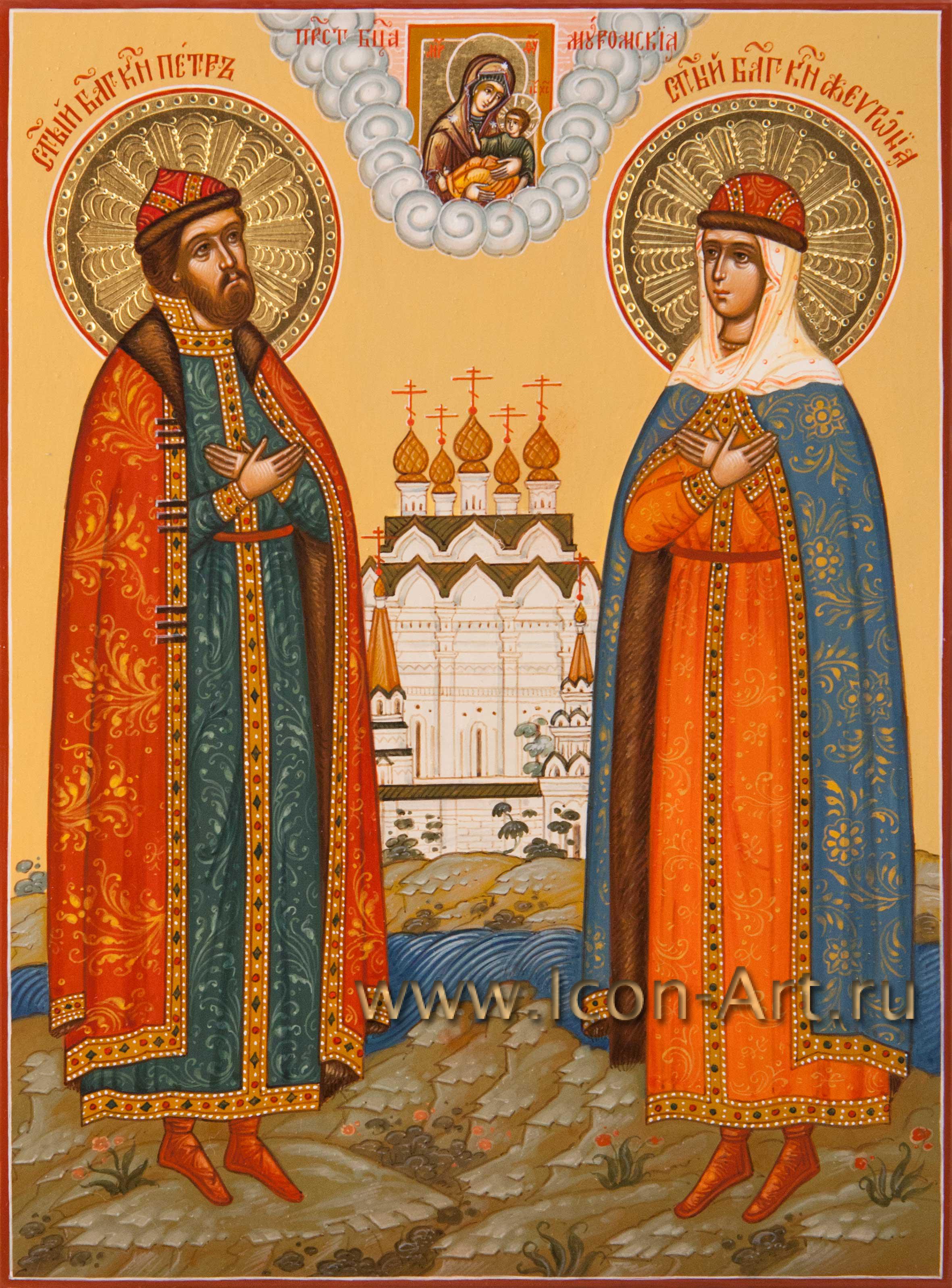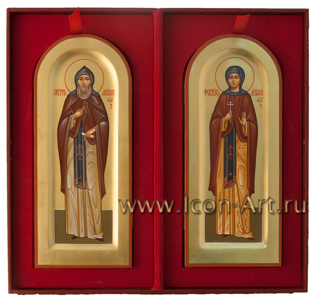14 февраля в странах Запада отмечают праздник святого Валентина или, иначе, день всех влюбленных. В России постепенно тоже привыкают отмечать этот праздник, только уже согласно нашей православной традиции, день этого праздника приходится на 8 июля. В этот день Русская Православная Церковь чествует память святых князя Петра и княгини Февронии Муромских - Покровителей семьи и сохранения супружеской верности. На семейных иконах изображаются святые покровители всей семьи вместе (иногда пишут также и святых покровителей уже ушедших из жизни родителей). Для написания такого образа мы подбираем по именам каждого святого, при этом находим и редких святых. На такой иконе можно также писать и Ангела Хранителя - Покровителя семейного рода. Такие иконы часто писались в семьях, искусствоведы обычно называют их иконами с избранными святыми. Сейчас часто стали писать такие образы не только в свой дом, для себя, но и в подарок. В нашей иконописной мастерской всегда можно заказать семейную икону.