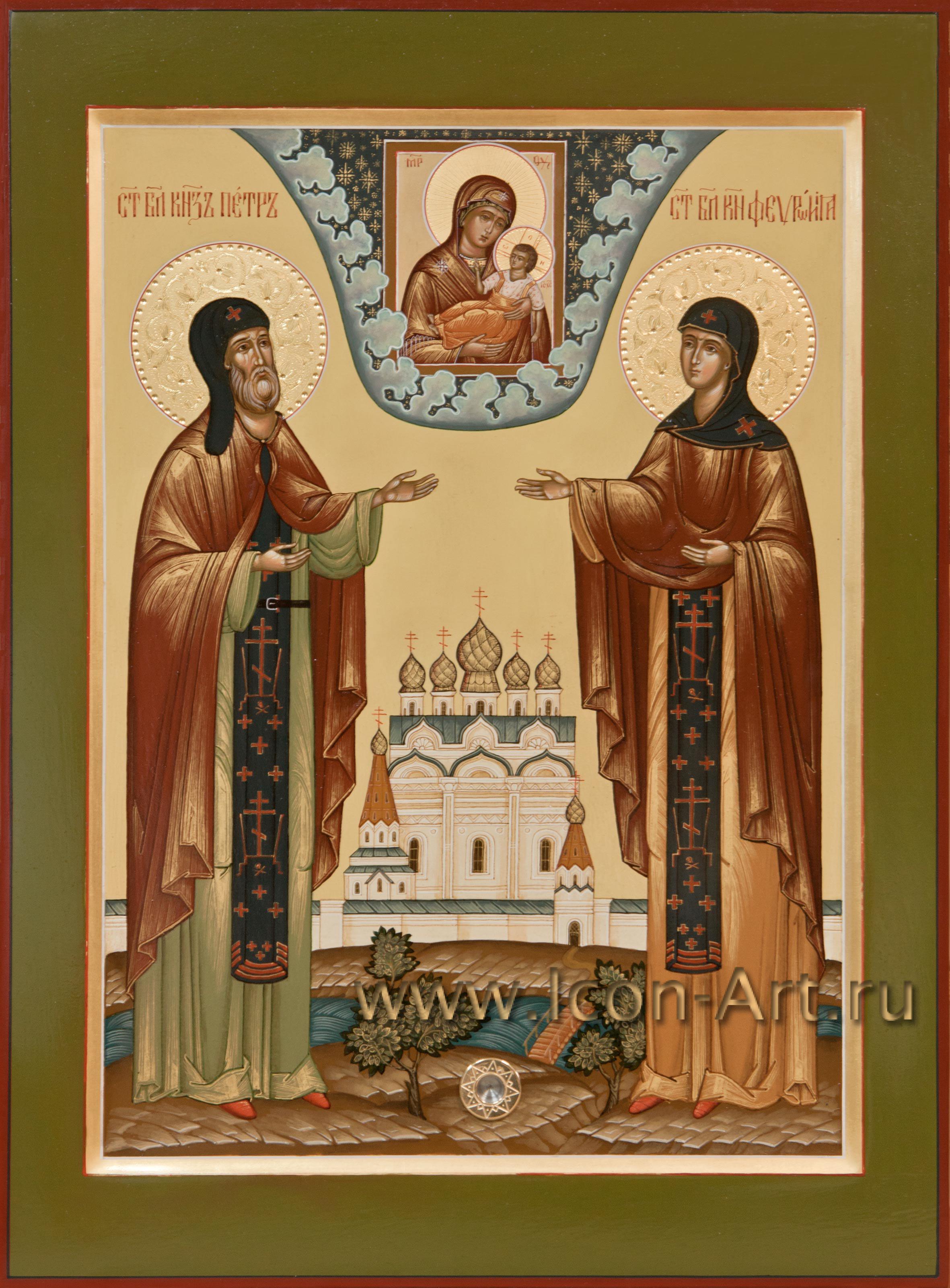 14 февраля в странах Запада отмечают праздник святого Валентина или, иначе, день всех влюбленных. В России постепенно тоже привыкают отмечать этот праздник, только уже согласно нашей православной традиции, день этого праздника приходится на 8 июля. В этот день Русская Православная Церковь чествует память святых князя Петра и княгини Февронии Муромских - Покровителей семьи и сохранения супружеской верности. На семейных иконах изображаются святые покровители всей семьи вместе (иногда пишут также и святых покровителей уже ушедших из жизни родителей). Для написания такого образа мы подбираем по именам каждого святого, при этом находим и редких святых. На такой иконе можно также писать и Ангела Хранителя - Покровителя семейного рода. Такие иконы часто писались в семьях, искусствоведы обычно называют их иконами с избранными святыми. Сейчас часто стали писать такие образы не только в свой дом, для себя, но и в подарок. В нашей иконописной мастерской всегда можно заказать семейную икону.
