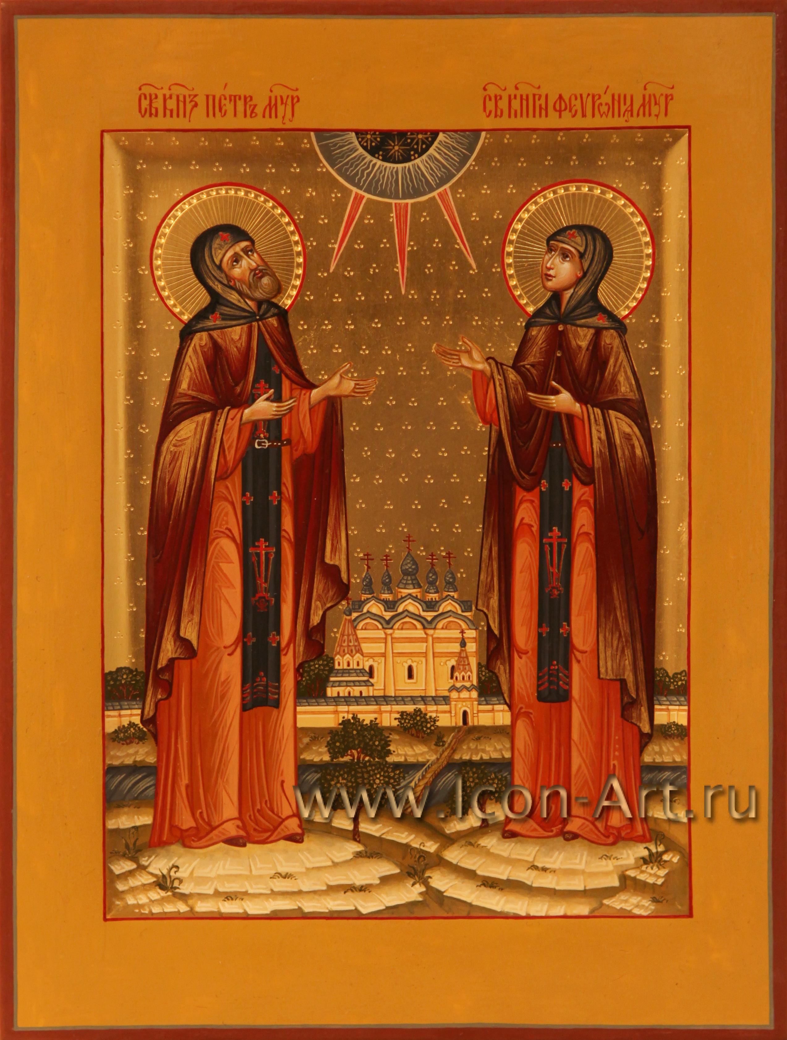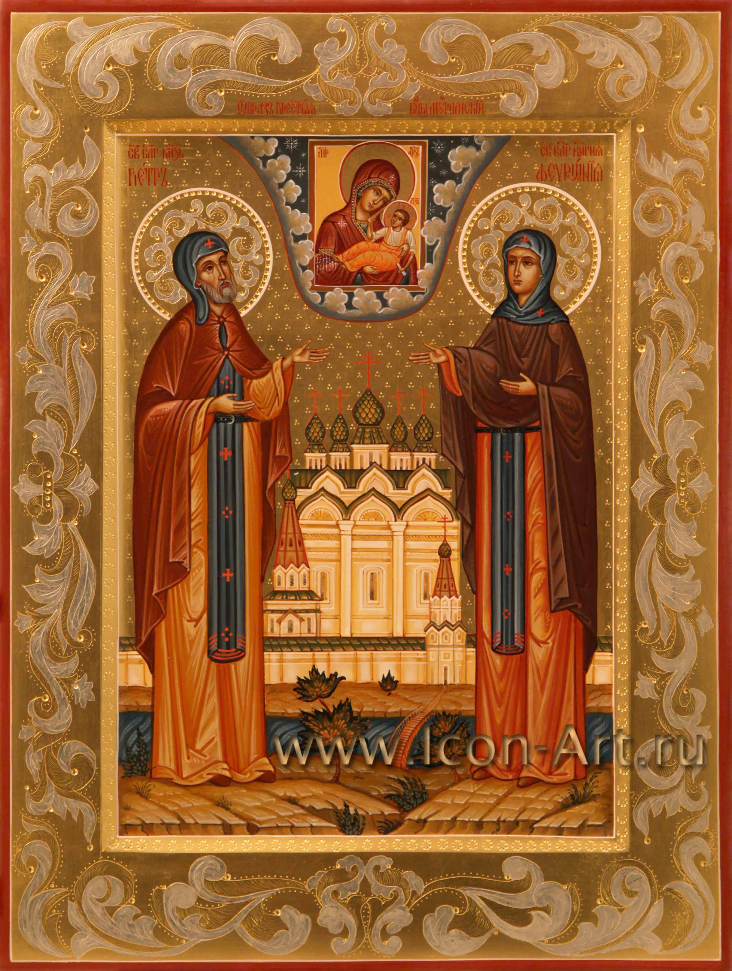 14 февраля в странах Запада отмечают праздник святого Валентина или, иначе, день всех влюбленных. В России постепенно тоже привыкают отмечать этот праздник, только уже согласно нашей православной традиции, день этого праздника приходится на 8 июля. В этот день Русская Православная Церковь чествует память святых князя Петра и княгини Февронии Муромских - Покровителей семьи и сохранения супружеской верности. На семейных иконах изображаются святые покровители всей семьи вместе (иногда пишут также и святых покровителей уже ушедших из жизни родителей). Для написания такого образа мы подбираем по именам каждого святого, при этом находим и редких святых. На такой иконе можно также писать и Ангела Хранителя - Покровителя семейного рода. Такие иконы часто писались в семьях, искусствоведы обычно называют их иконами с избранными святыми. Сейчас часто стали писать такие образы не только в свой дом, для себя, но и в подарок. В нашей иконописной мастерской всегда можно заказать семейную икону.
