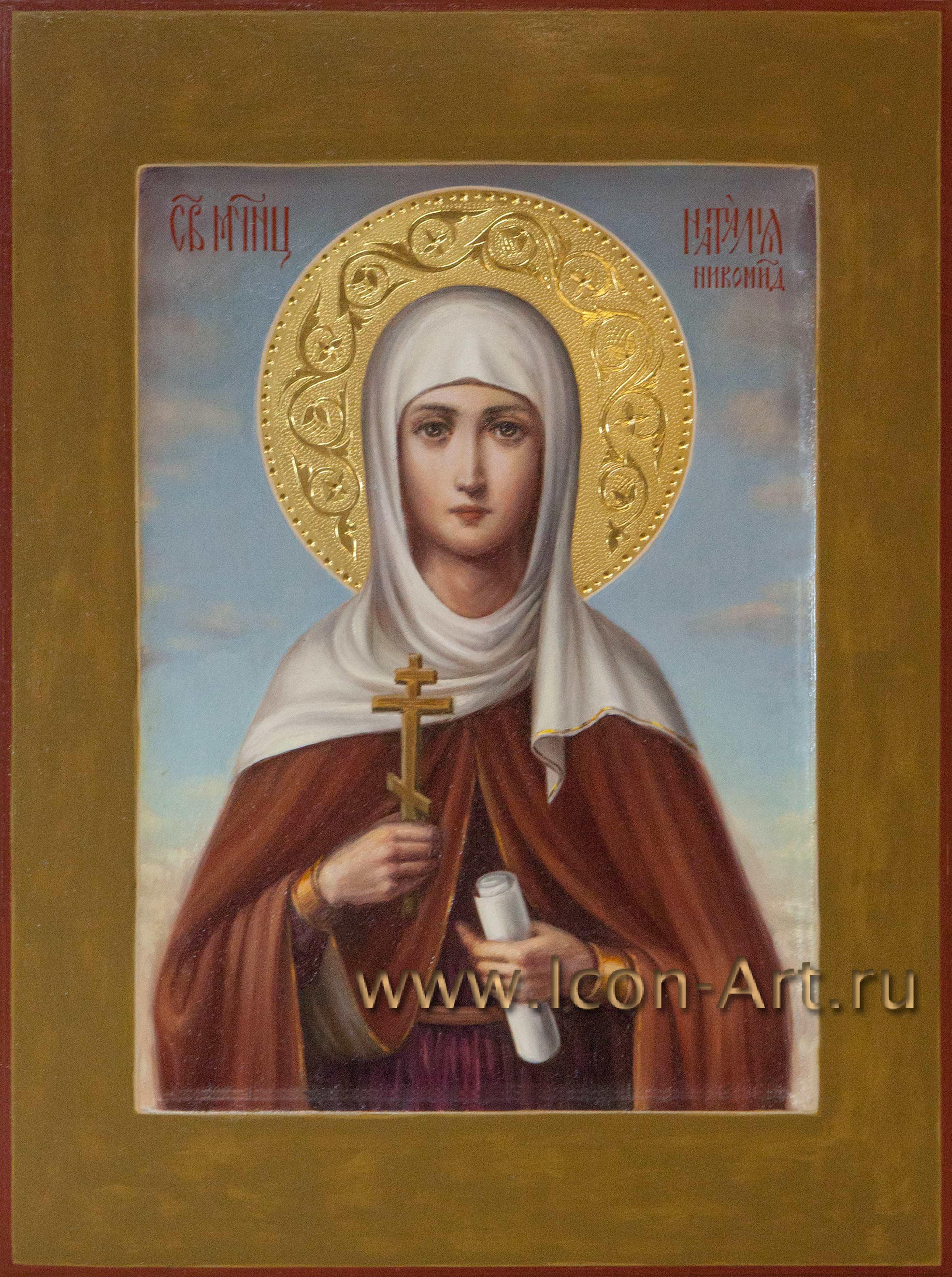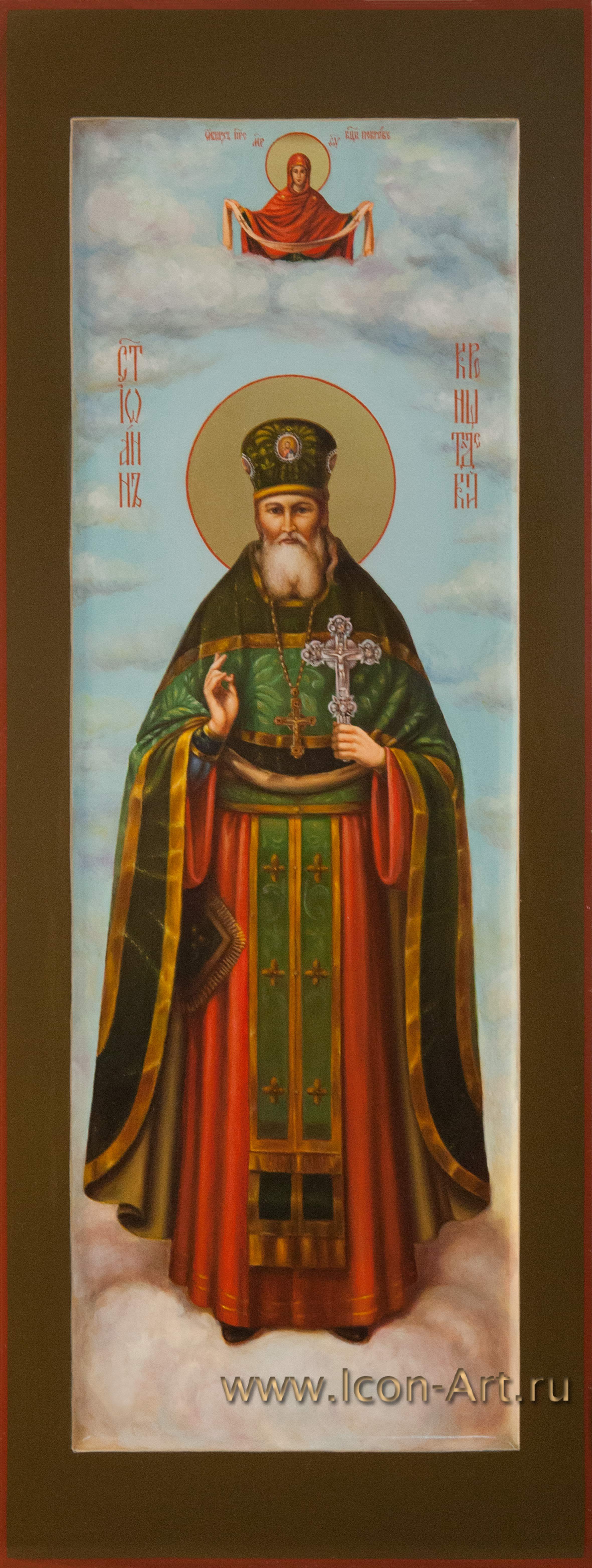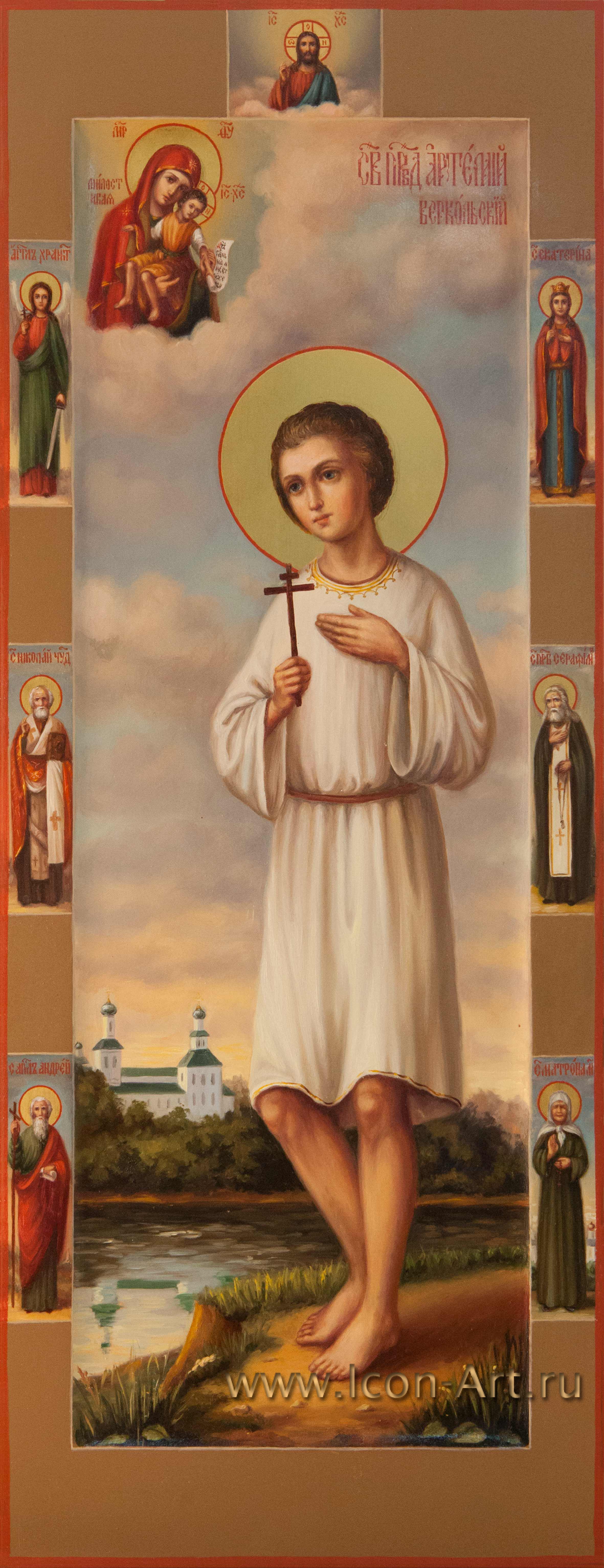 Наша мастерская является поклонником древнего иконописного стиля и техники, но жизнь заставила нас поменять мнение о более поздних иконах, где святые изображены масляными красками, реалистично, как в земной жизни. К нам в мастерскую пришла женщина и попросила написать мерную икону со святой Ксенией Петербургской для своей внучки. Маленькая Ксения родилась в день празднования святого Серафима Саровского. Поэтому женщина попросила вместе со святой Ксенией написать преподобного Серафима и икону Божией Матери Умиление, на которую молился старец. Когда Ксения родилась, о мерных иконах было мало публикаций и женщина не знала, что бывают такие иконы. Она пришла к нам когда девочке было уже шесть лет. Родители читали ей духовные книги и показывали иконы её святых покровителей. Это были детские книги, где святые изображены реалистично. Женщина попросила написать святых именно такими, как её внучка привыкла видеть в книгах. Словно святые мерной иконы сами пришли в дом.