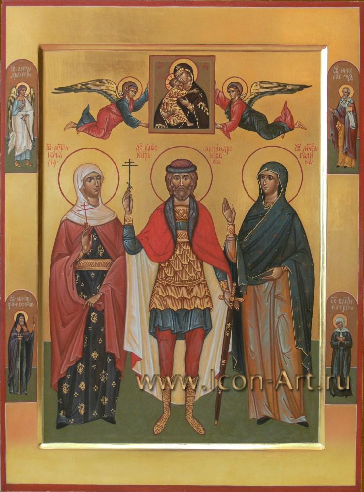 14 февраля в странах Запада отмечают праздник святого Валентина или, иначе, день всех влюбленных. В России постепенно тоже привыкают отмечать этот праздник, только уже согласно нашей православной традиции, день этого праздника приходится на 8 июля. В этот день Русская Православная Церковь чествует память святых князя Петра и княгини Февронии Муромских - Покровителей семьи и сохранения супружеской верности. На семейных иконах изображаются святые покровители всей семьи вместе (иногда пишут также и святых покровителей уже ушедших из жизни родителей). Для написания такого образа мы подбираем по именам каждого святого, при этом находим и редких святых. На такой иконе можно также писать и Ангела Хранителя - Покровителя семейного рода. Такие иконы часто писались в семьях, искусствоведы обычно называют их иконами с избранными святыми. Сейчас часто стали писать такие образы не только в свой дом, для себя, но и в подарок. В нашей иконописной мастерской всегда можно заказать семейную икону.