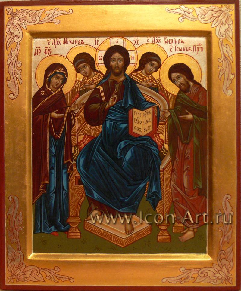 Деисус (домашний иконостас). По Правую руку Вседержителя изображена Пресвятая Богородица, по Левую - святой Иоанн Предтеча. За ними - Архангелы, справа - Михаил, слева - Гавриил.