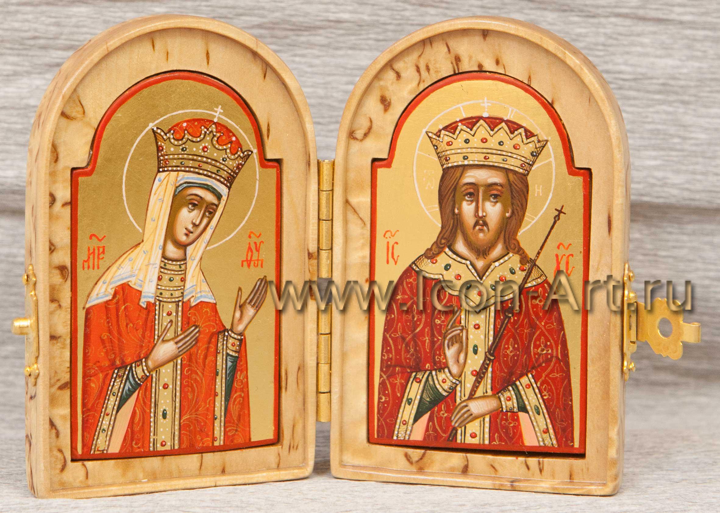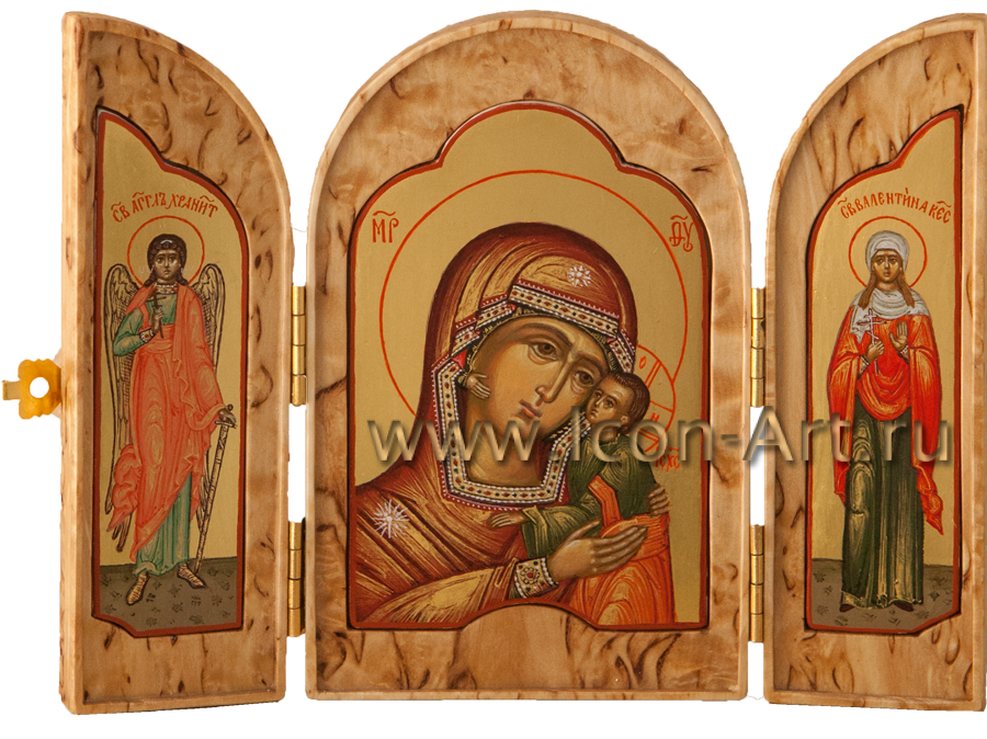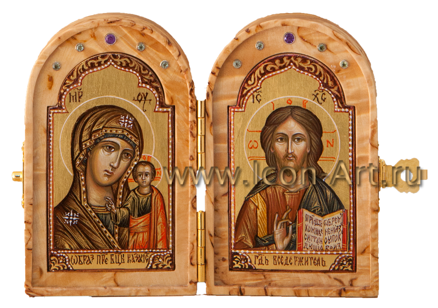 Во время войны войско всегда сопровождалось походной церковью, где также имелись небольшие походные складные иконостасы, а также каждый воин непременно имел у себя нагрудный маленький складень, с которым никогда не расставался. Наша иконописная мастерская предлагает Вам складни, выполненные из дорогой породы дерева – карельской березы. Из-за своего причудливого рисунка карельская береза с древности использовалась для создания и украшения художественных изделий.