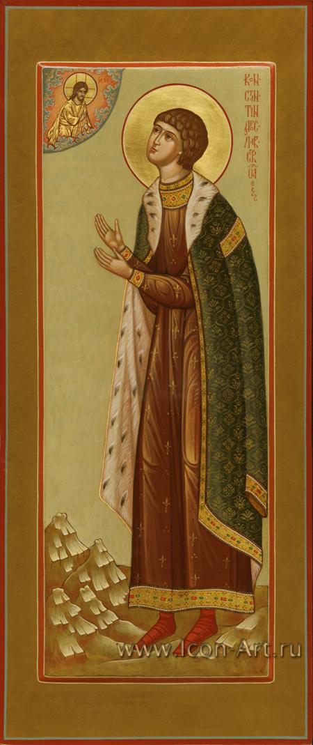 Мерная икона значит написанная на иконописной доске изготовленной в "меру роста", т.е. в размер новорожденного младенца. Издревле была традиция: заказать мерную икону специально "на рождение" ребенка. Такая икона будет путеводителем новорожденному человеку от самого его рождения и до смерти. На такой иконе пишутся святые покровители ребенка: тезоименитый святой, святой, который празднуется в день рождения ребенка и Ангел Хранитель. Иногда пишется икона Пресвятой Богородицы покровительница.