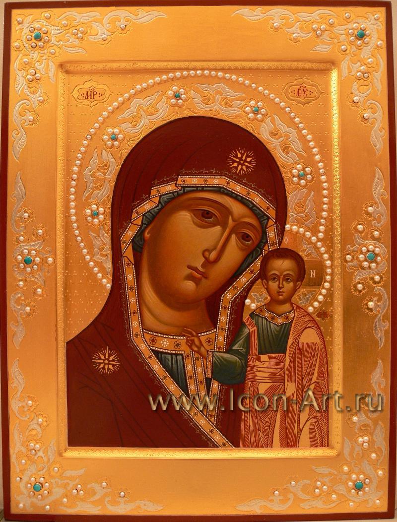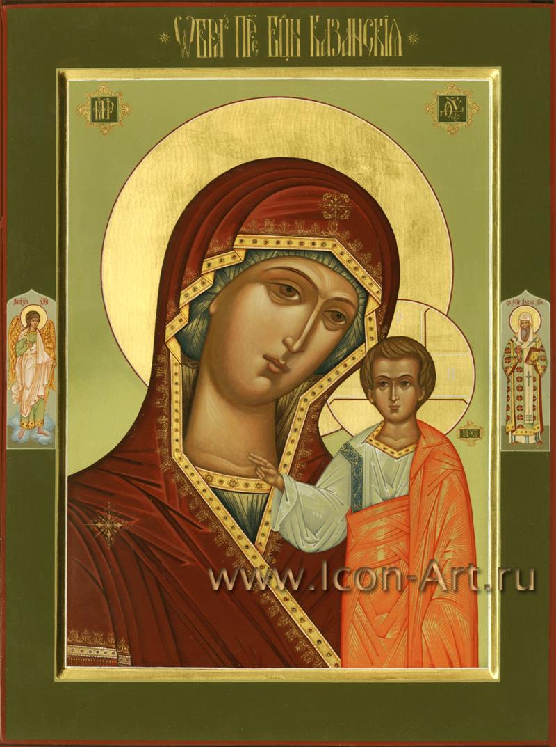 Икона Пресвятой Богородицы «Казанская». На полях иконы святой Ангел Хранитель и святой Алексий митрополит Московский.