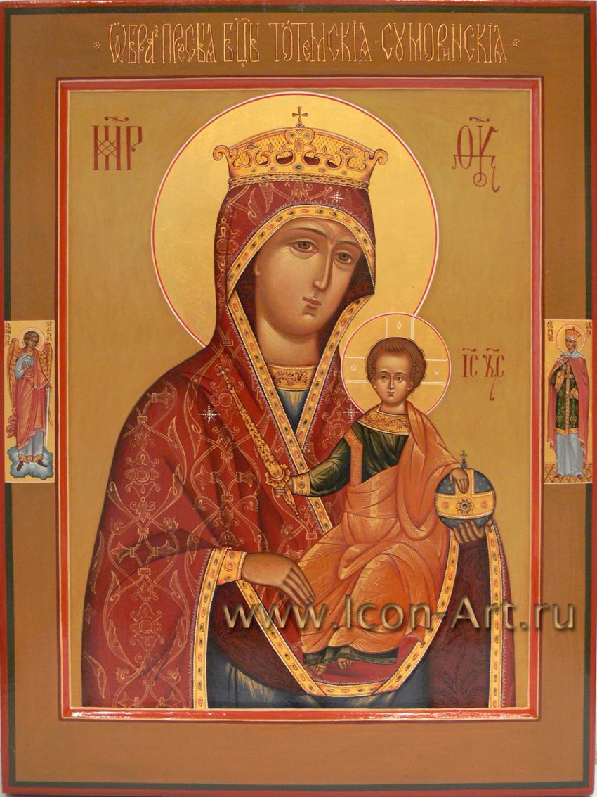 Икона Пресвятой Богородицы «Тотемская-Суморенская». На полях иконы святой Ангел Хранитель и святая равноап. великая княгиня Ольга.