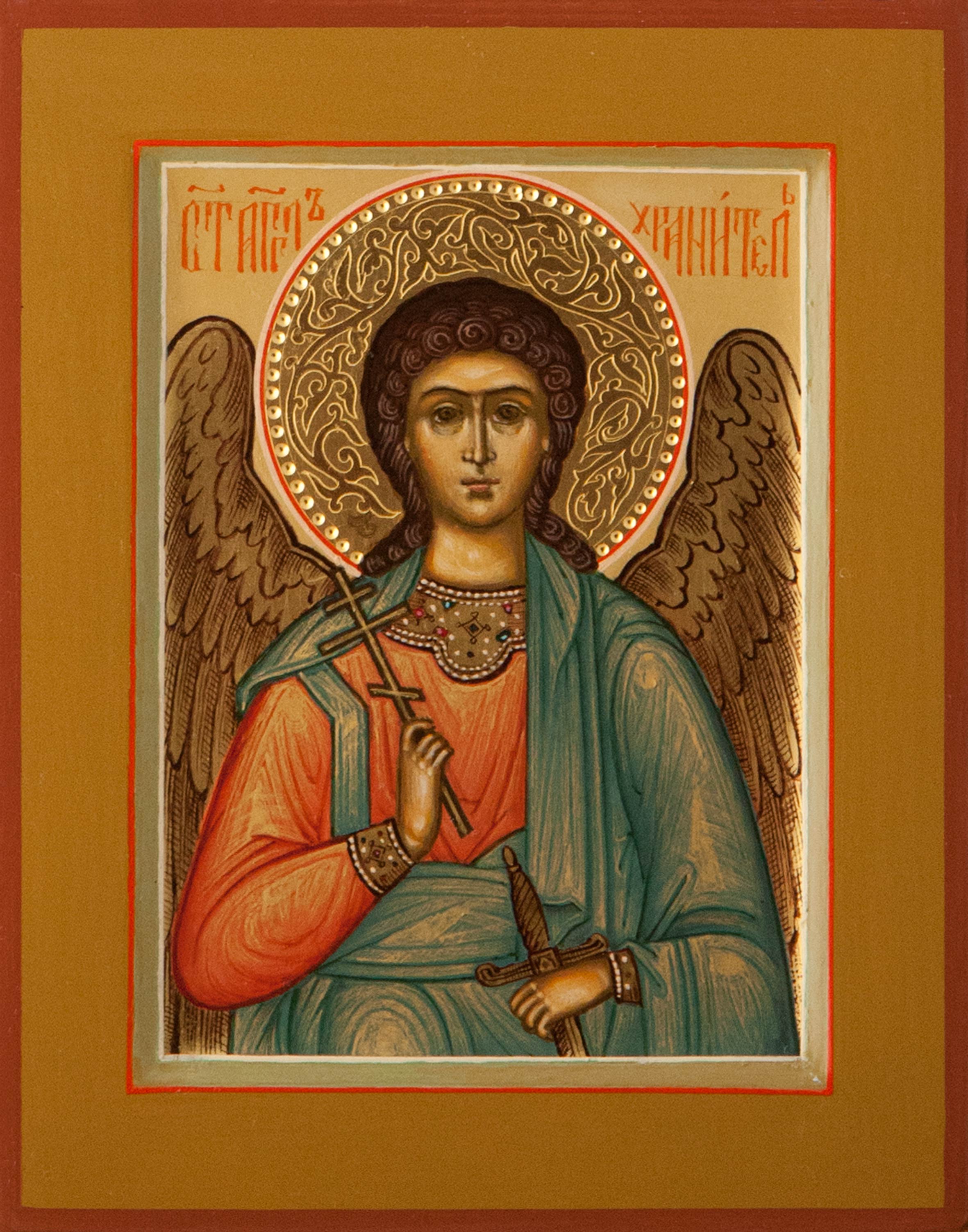 На ней изображены: святой Ангел Хранитель, святой мученик Михаил Черноризец, святой Александр Невски