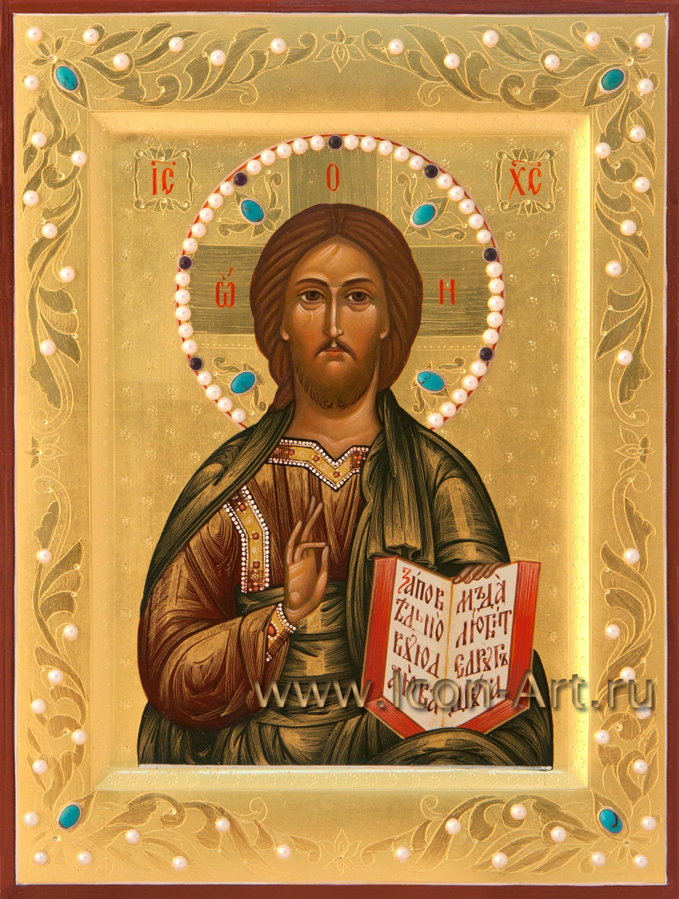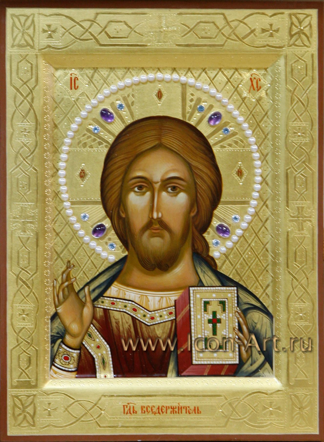 (30Х40 см. Дерево, левкас, паволока, масло, позолота, нефрит, яшма, гранаты, аметист, хризолит, жемч
