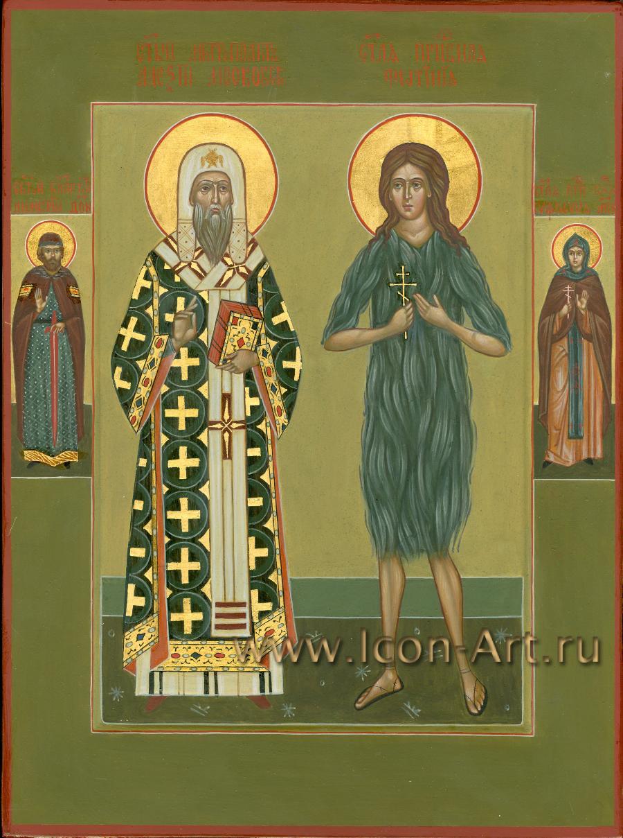 Семейная икона. Святая Ксения Петербургская, святой Архангел Михаил, святая Фотиния Палестинская. Св