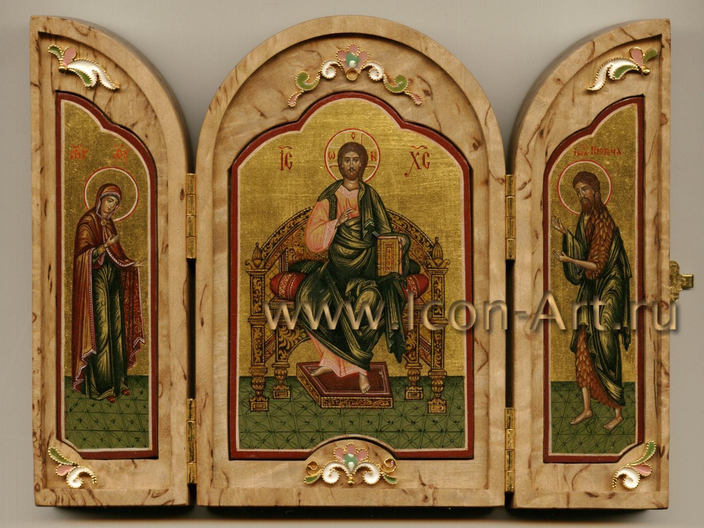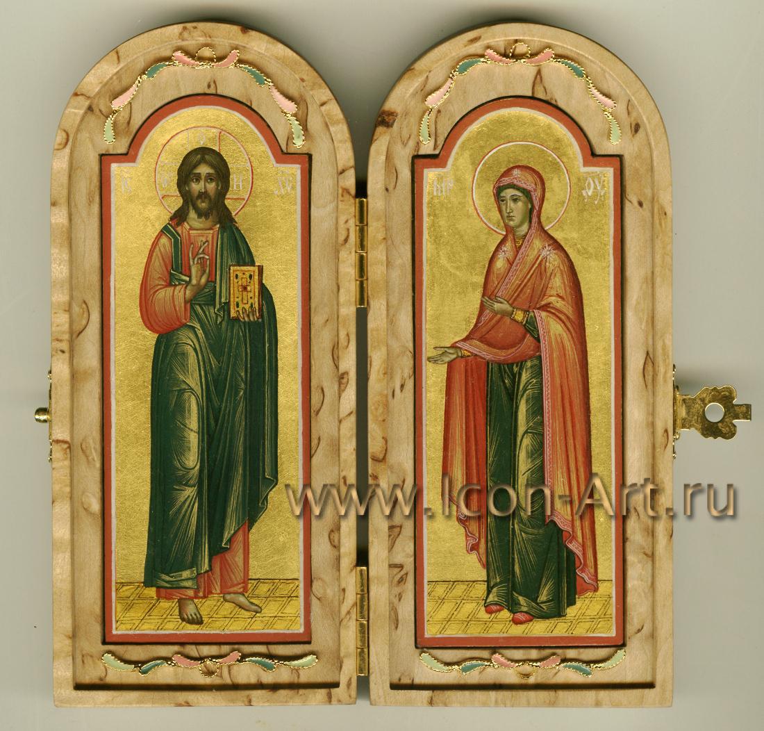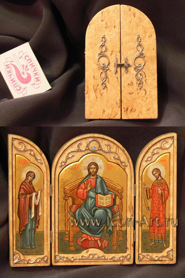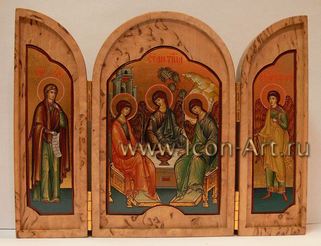Во время войны войско всегда сопровождалось походной церковью, где также имелись небольшие походные складные иконостасы, а также каждый воин непременно имел у себя нагрудный маленький складень, с которым никогда не расставался. Наша иконописная мастерская предлагает Вам складни, выполненные из дорогой породы дерева – карельской березы. Из-за своего причудливого рисунка карельская береза с древности использовалась для создания и украшения художественных изделий.