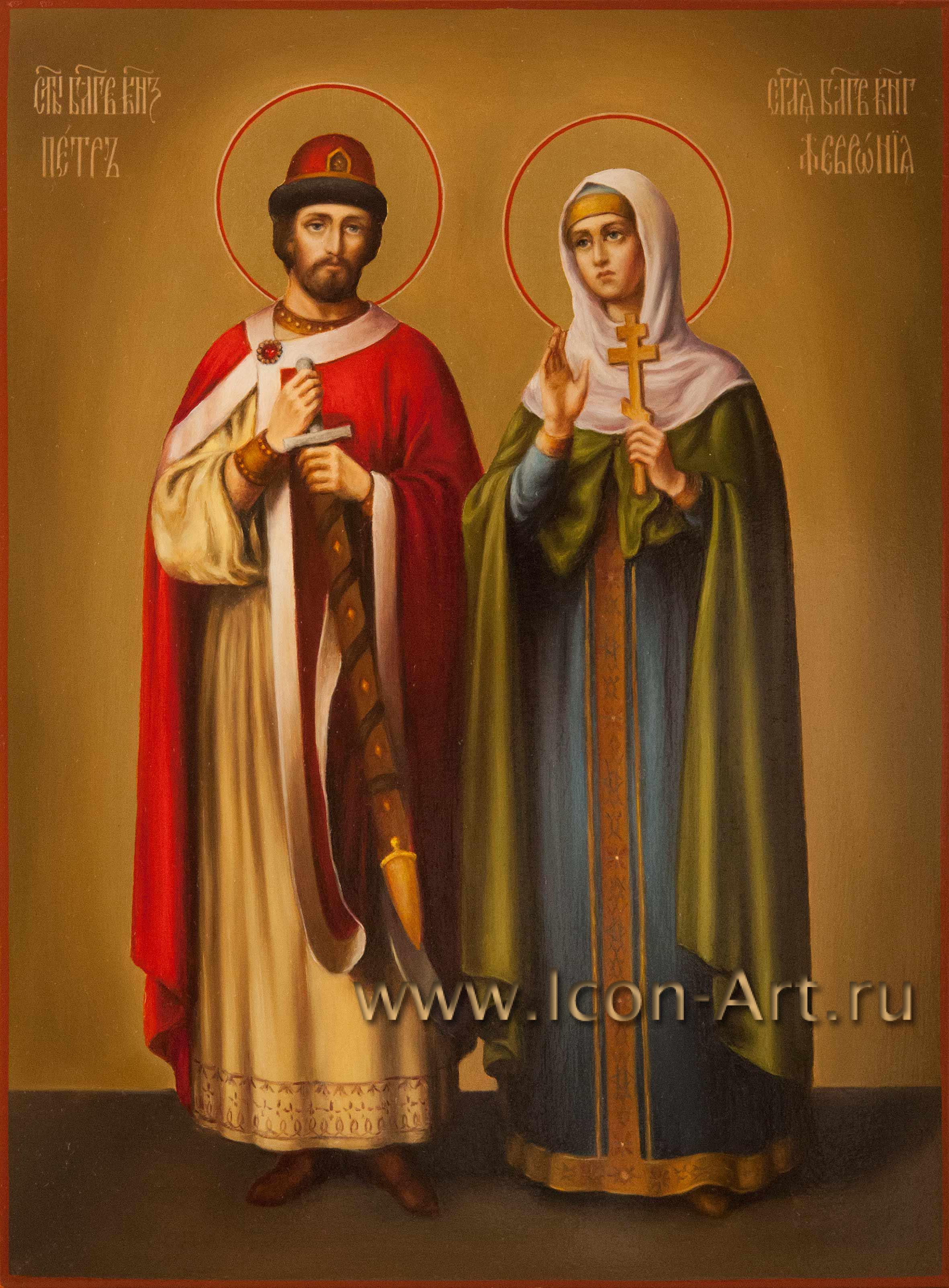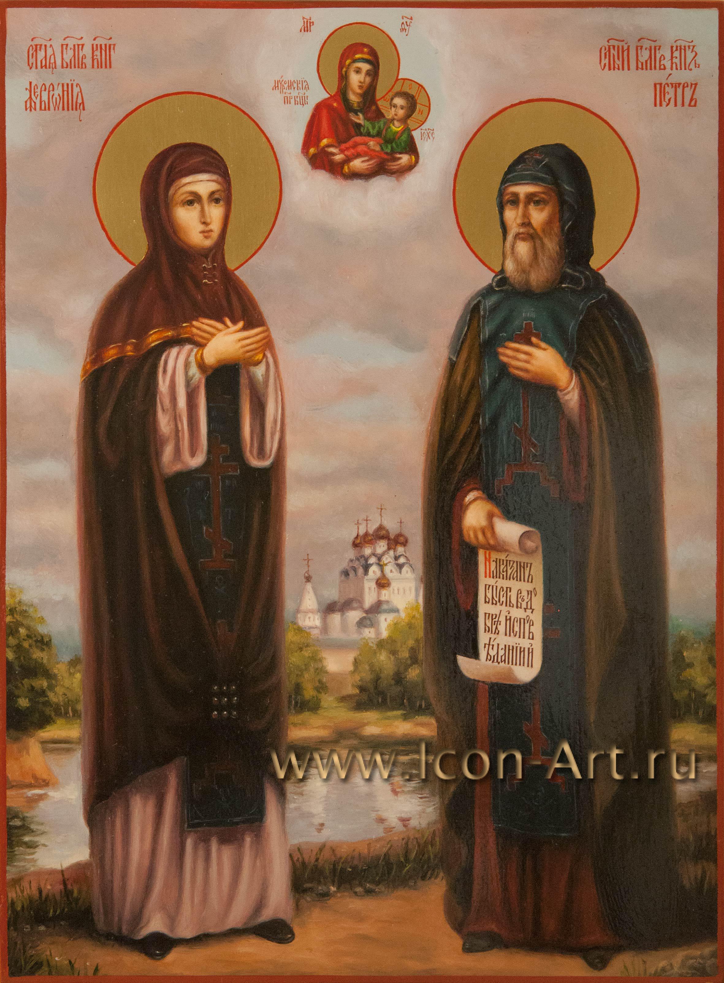 14 февраля в странах Запада отмечают праздник святого Валентина или, иначе, день всех влюбленных. В России постепенно тоже привыкают отмечать этот праздник, только уже согласно нашей православной традиции, день этого праздника приходится на 8 июля. В этот день Русская Православная Церковь чествует память святых князя Петра и княгини Февронии Муромских - Покровителей семьи и сохранения супружеской верности. На семейных иконах изображаются святые покровители всей семьи вместе (иногда пишут также и святых покровителей уже ушедших из жизни родителей). Для написания такого образа мы подбираем по именам каждого святого, при этом находим и редких святых. На такой иконе можно также писать и Ангела Хранителя - Покровителя семейного рода. Такие иконы часто писались в семьях, искусствоведы обычно называют их иконами с избранными святыми. Сейчас часто стали писать такие образы не только в свой дом, для себя, но и в подарок. В нашей иконописной мастерской всегда можно заказать семейную икону.