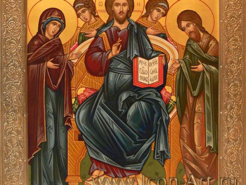 В молитве по обе стороны Ему предстоят Богородица и Иоанн Предтеча, как самые первые, самые теплые ходатаи за нас перед Богом. Далее по обе стороны следуют апостолы, святители, мученики, преподобные. Фигуры святых занимают целый рад, ярус иконостаса, который называется деисус – то есть моление. Деисус становится центром и домашнего иконостаса – уменьшенной модели храмового. Заказать домашний иконостас