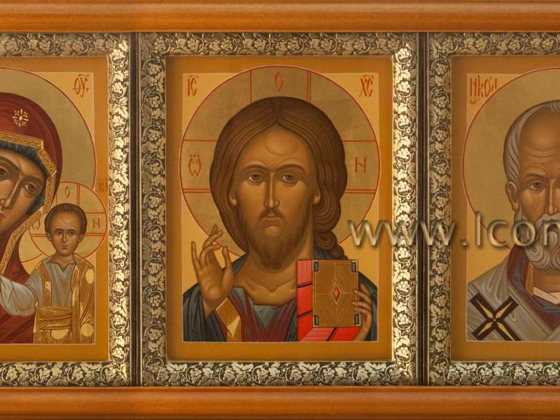 Домашний иконостас может иметь большие размеры, если пространство дома позволяет это. Например, деисуснй чин может состоять из отдельных икон. Выполненные в одном стиле иконы вместе образуют триптих.