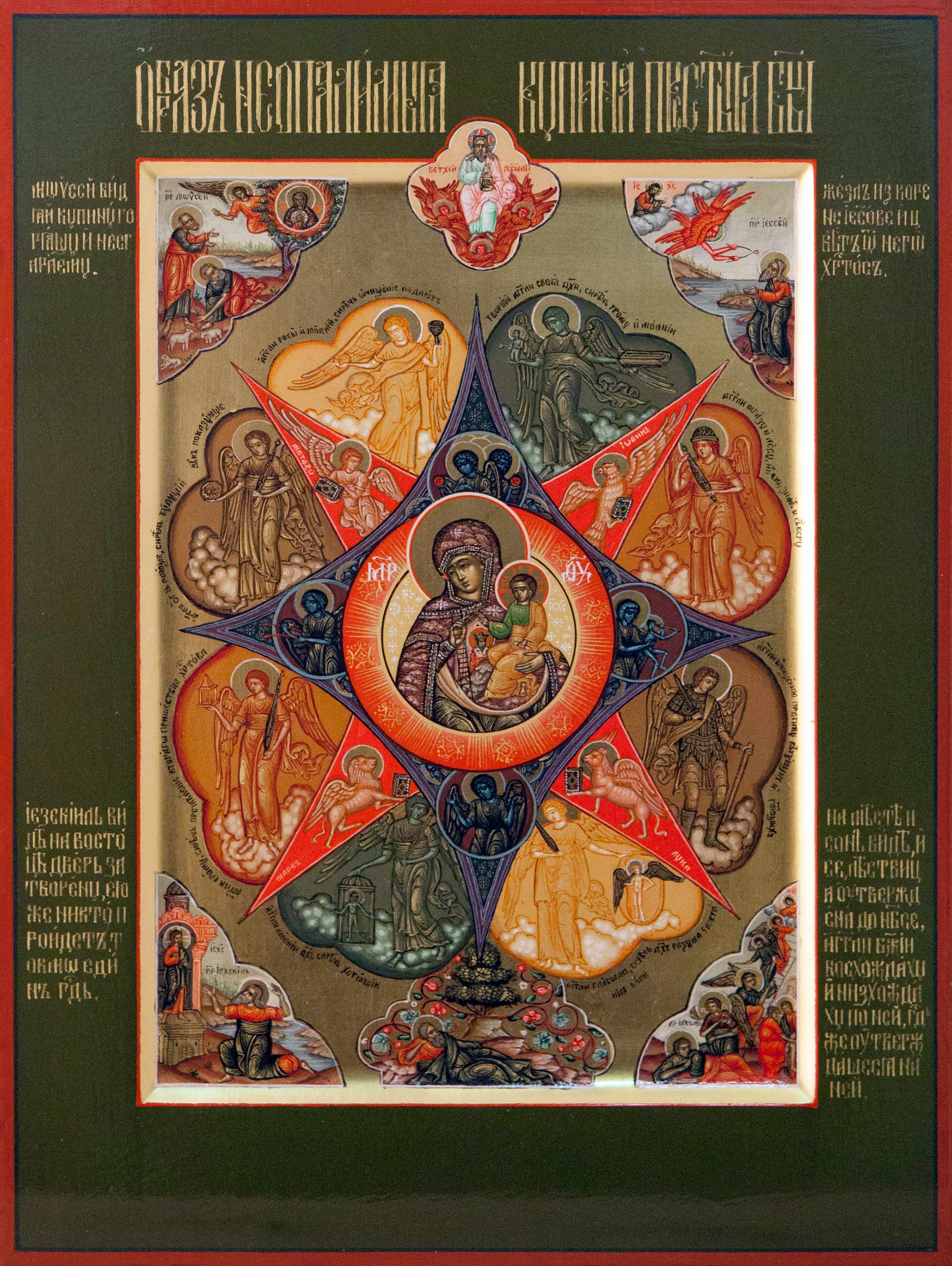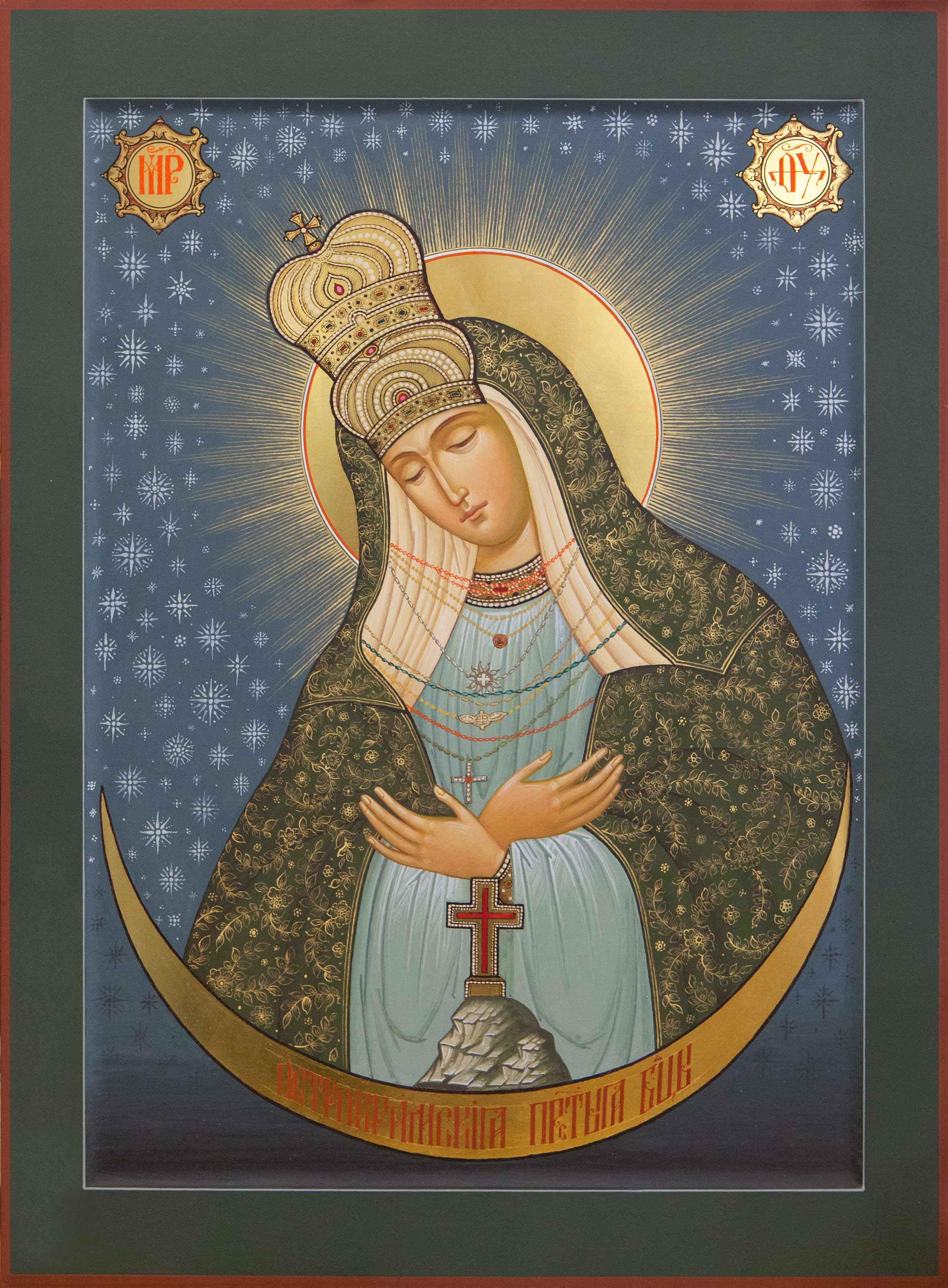 Другая имеет более традиционный, православный характер. Голова Богородицы покрыта омофором, а Богомладенец представлен в одеянии. Пальцы его правой руки сложены в благословляющем жесте. Они формируют монограмму имени «Иисус Христос» – IC XC.