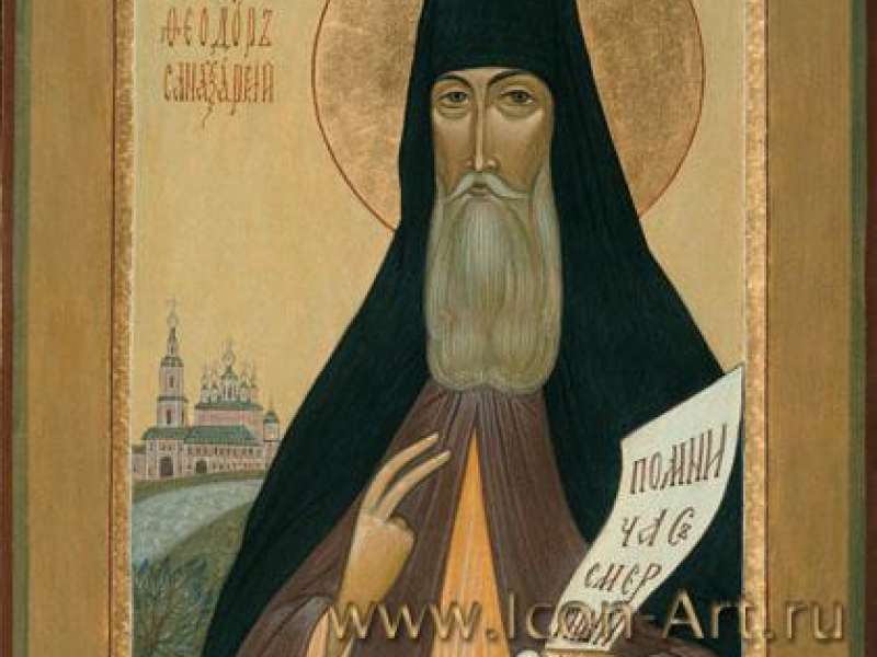 Известно, что святой Феодор вел очень аскетическую, отшельническую жизнь. Он поднял заброшенный Санаксарский монастырь, и положил в нем весьма строгий устав. Так, например, монахи вместе с ним одевались в очень простую грубую одежду, спали на досках, укрывшись рогожей. Многие, из вновь пришедших, не выдерживали такой суровой жизни и уходили в другие монастыри.
