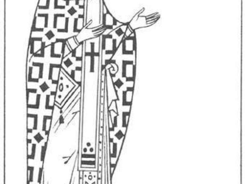 Мы открыли церковный календарь и обнаружили, что существует 26 Святых Александров, канонизированных Православной Церковью. Кто же покровитель "нашего" Александра? Он крестился зимой, в феврале месяце, и ближайший после крещения святой Александр - это преподобный Александр Константинопольский, первоначальник обители "Неусыпающих" (день памяти - 23 февраля по старому стилю). Но как же нарисовать этого святого? Существует много икон Святого Александра Невского, встречаются иконы Александра Свирского, но изображения иконки Александра Константинопольского не было в нашем архиве. Тогда в Минеях (богослужебных книгах на каждый день) мы нашли описание жизни Святого Александра. Он получил образование в Царьграде, где и поступил на военную службу, но через некоторое время оставил ее, чтобы служить только Единому Богу Небесному. Читая постоянно Евангелие, он много постился и молился и поступил в сирийскую обитель Святого Пророка Илии. Спустя четыре года он удалился из Сирии в пустыню и взял с собою лишь одно Евангелие. Вера его была столь сильна, а жизнь столь праведна, что к нему собрались другие ревнители иноческой жизни, числом до 400, для которых он основал 9 монастырей. В этих монастырях им был введен особый чин "неусыпающих", т.е. непрерывное денно-нощное псалмопение, совершаемое попеременно иноками, для чего сутки были разделены на 24 череды. Скончался этот угодник Божий в 430 г.
