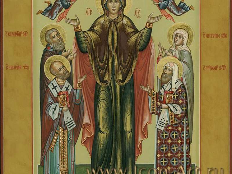 Покров Пресвятой Богородицы. Cвятой прп. Серафим Саровский, святая блаженная Матрона Московская, святой Николай Чудотворец, святой Патриарх Моск