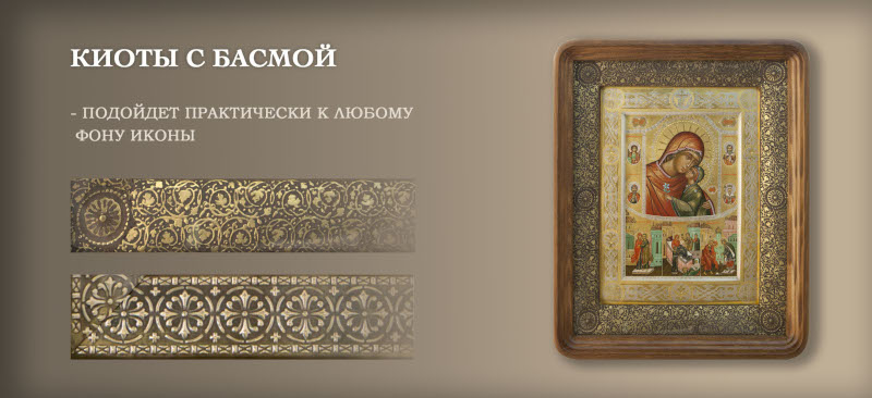 Киоты бывают с разной резьбой или басмой: