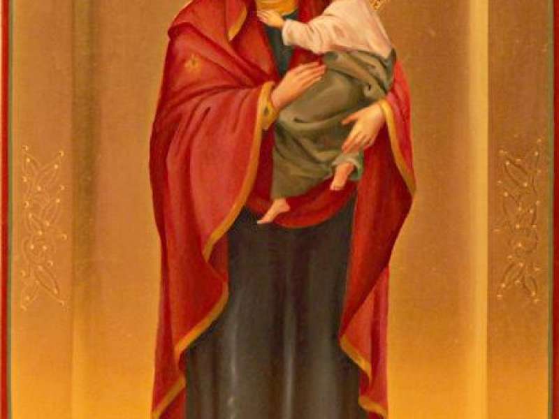 У Людмилы Николаевны Виноградовой несколько лет назад умерла дочь. После этого она часто бывала на Богослужениях. Придя однажды, она увидела вновь написанные иконы. Я рассказала ей историю их поступления в Храм. В память о своей единственной дочери Людмила Николаевна заказала икону Божией Матери «Владимирская» в мастерской и пожертвовала её Храму.
