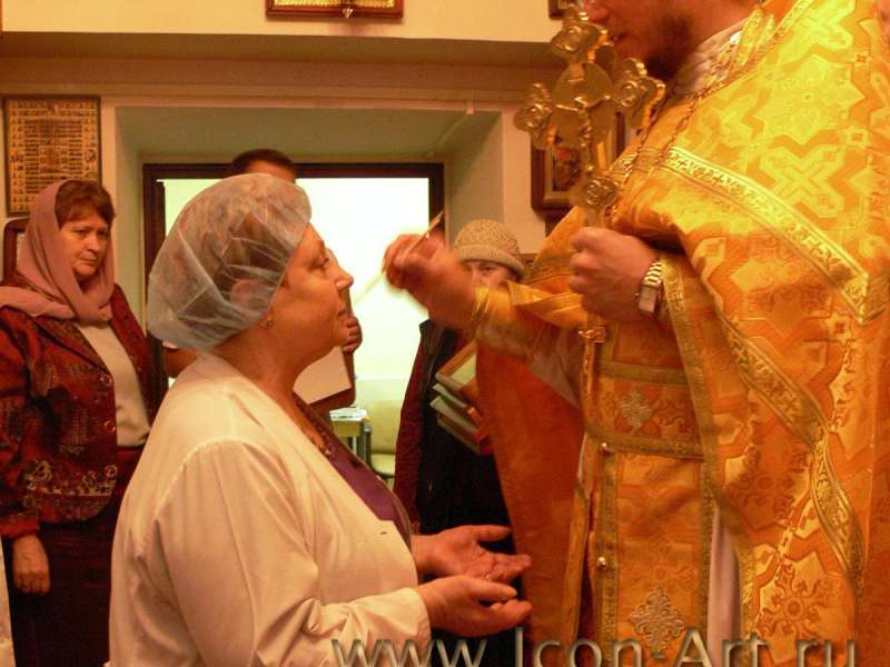 1 марта 2009 года икона Пресвятой Богородицы «Всецарица» была написана. Я попросила настоятеля храма, отца Александра, помочь привезти икону. Он откликнулся, и не прошло и получаса, как икона была в Храме. Отец Александр, понимая на сколько важна икона-целительница для наших прихожан, являющихся пациентами больницы, определил место для образа на стене, так, чтобы все нуждающиеся могли подойти, помолиться и поцеловать икону. В последствии, рядом с иконой поставили подсвечник. Созданная в мастерской Екатерины Ильинской икона «Всецарица» уникальна тем, что на ней по полям написаны святые целители, бессеребряники. Среди них святой Нектарий Эгинский, которому молятся онкологические больные об исцелении, день его памяти празднуется в день создания нашего храма, поэтому он еще и покровитель нашего прихода. На иконе написан и святой Пантелеимон, в честь которого освящен наш храм.