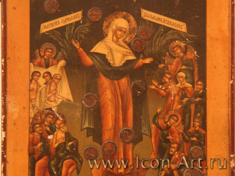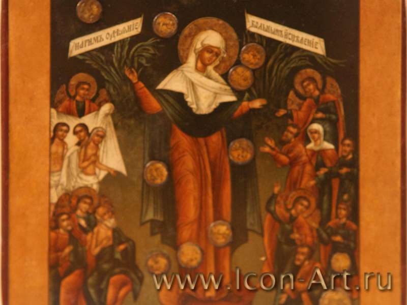 Одна сотрудница нашего медицинского центра принесла икону Божией Матери «Всех скорбящих радость с грошиками» и попросила принять в дар от её мамы. Икона требовала реставрации и была без киота. Это произошло в тот момент, когда в храме не было денег, которые можно было бы потратить на реставрацию, а образ Божией Матери так притягивал, что не хотелось терять время. Я приняла решение пожертвовать свои личные сбережения и начать работу по восстановлению иконы, и внесла необходимую для начала работ сумму. Великим постом икона вернулась в Храм уже отреставрированная. Место на стене было ей определено. А недостающие деньги уже были приготовлены – это пожертвования сотрудников. Так, с Божией Помощью благоукрашался наш Храм.