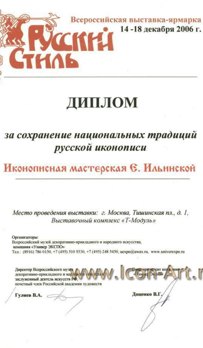 "Всероссийская выставка ярмарка "Русский стиль". Москва, Тишинская пл. д.1, стр. 1 (ВК Т-Модуль), 2006 г.