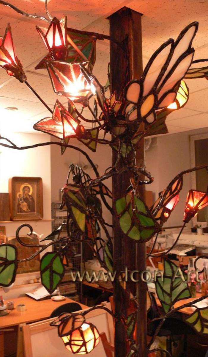 К празднику освящения мы собрали уникальное произведение из металла, стекла и дерева: дубовый стол и объёмный витраж. Это прообраз Райского Древа Вечной Жизни. Вместе с отцом Александром мы уселись под светящимся Деревом и пили чай с вкусными пирогами. Особенно был счастлив Кот Феникс.:-))