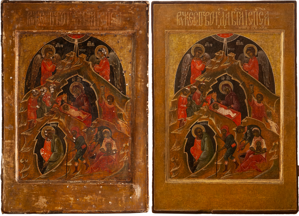 Реставрация икон – очень сложный и кропотливый процесс, требующий от мастера большой аккуратности, терпения и профессиональных навыков. Каждая древняя икона – это целая история, которую, как книгу может прочитать опытный реставратор. По состоянию памятника часто можно сказать когда и где он был написан, в каких условиях хранился, какие видоизменения претерпел в ходе своей жизни. Некоторые памятники искусства попадают к нам в руки в совершенно аварийном состоянии и требуют срочного вмешательства мастера, другие поступают к нам в неплохой сохранности и им достаточна лишь небольшая расчистка от загрязнений, но иногда попадаются и "сюрпризы", которые ведут себя очень непредсказуемо в процессе работы. Поэтому часто невозможно предсказать, как пойдет реставрационный процесс, как поведет себя икона в процессе реставрации и как скоро будет восстановлена.