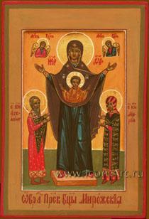 Икона Пресвятой Богородицы Мирожская была обретена в 1198 году в Псковской области в устье реки Мирожи, откуда и получила свое название. На этом образе Богородица изображена с поднятыми в молении руками в образе оранты. Позже... Далее...